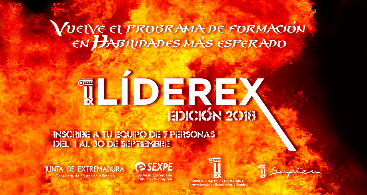 La Universidad de Extremadura presenta el programa LÍDEREX, para la mejora de las capacidades y las competencias de jóvenes que deseen no solo dar valor a qué son, sino a quiénes son. De la mano del profesor Carlos Ongallo, y con técnicas outdoor y experienciales, ofrecemos a los participantes un verdadero RETO en el que el protagonismo recaerá cada uno de los equipos.